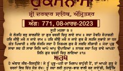 ਸ੍ਰੀ ਦਰਬਾਰ ਸਾਹਿਬ ਤੋਂ ਅੱਜ ਦਾ ਹੁਕਮਨਾਮਾ 10-3-2023