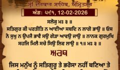 ਸਤਿਗੁਰ ਕੀ ਪਰਤੀਤਿ ਨ ਆਈਆ ਸਬਦਿ ਨ ਲਾਗੋ ਭਾਉ ॥ ਓਸ ਨੋ ਸੁਖੁ ਨ ਉਪਜੈ ਭਾਵੈ ਸਉ ਗੇੜਾ ਆਵਉ ਜਾਉ ॥ ਨਾਨਕ ਗੁਰਮੁਖਿ ਸਹਜਿ ਮਿਲੈ ਸਚੇ ਸਿਉ ਲਿਵ ਲਾਉ ॥੧॥ ਮ: ੩ ॥ ਏ ਮਨ ਐਸਾ ਸਤਿਗੁਰੁ ਖੋਜਿ ਲਹੁ ਜਿਤੁ ਸੇਵਿਐ ਜਨਮ ਮਰਣ ਦੁਖੁ ਜਾਇ ॥ ਸਹਸਾ ਮੂਲਿ ਨ ਹੋਵਈ ਹਉਮੈ ਸਬਦਿ ਜਲਾਇ ॥ ਕੂੜੈ ਕੀ ਪਾਲਿ ਵਿਚਹੁ ਨਿਕਲੈ ਸਚੁ ਵਸੈ ਮਨਿ ਆਇ ॥ ਅੰਤਰਿ ਸਾਂਤਿ ਮਨਿ ਸੁਖੁ ਹੋਇ ਸਚ ਸੰਜਮਿ ਕਾਰ ਕਮਾਇ ॥ ਨਾਨਕ ਪੂਰੈ ਕਰਮਿ ਸਤਿਗੁਰੁ ਮਿਲੈ ਹਰਿ ਜੀਉ ਕਿਰਪਾ ਕਰੇ ਰਜਾਇ ॥੨॥