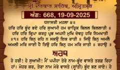 Shalok, Fifth Mehl: O Friend, I pray that I may remain forever the dust of Your Feet. Nanak has entered Your Sanctuary, and beholds You ever-present. ||1|| Fifth Mehl: Countless sinners become pure, by fixing their minds on the Feet of the Lord. The Name of God is the sixty-eight holy places of pilgrimage, O Nanak, for one who has such destiny written upon his forehead. ||2||
