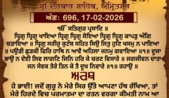 ਸ੍ਰੀ ਦਰਬਾਰ ਸਾਹਿਬ ਤੋਂ ਅੱਜ ਦਾ ਹੁਕਮਨਾਮਾ 17-2-2026