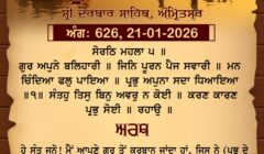 ਸ੍ਰੀ ਦਰਬਾਰ ਸਾਹਿਬ ਤੋਂ ਅੱਜ ਦਾ ਹੁਕਮਨਾਮਾ 21-1-2026