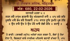 ਸ੍ਰੀ ਦਰਬਾਰ ਸਾਹਿਬ ਤੋਂ ਅੱਜ ਦਾ ਹੁਕਮਨਾਮਾ 22-2-2026