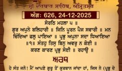 ਸ੍ਰੀ ਦਰਬਾਰ ਸਾਹਿਬ ਤੋਂ ਅੱਜ ਦਾ ਹੁਕਮਨਾਮਾ 24-12-2025