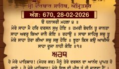 ਸ੍ਰੀ ਦਰਬਾਰ ਸਾਹਿਬ ਤੋਂ ਅੱਜ ਦਾ ਹੁਕਮਨਾਮਾ 28-2-2026