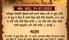 ਸ੍ਰੀ ਦਰਬਾਰ ਸਾਹਿਬ ਤੋਂ ਅੱਜ ਦਾ ਹੁਕਮਨਾਮਾ 31-7-2025