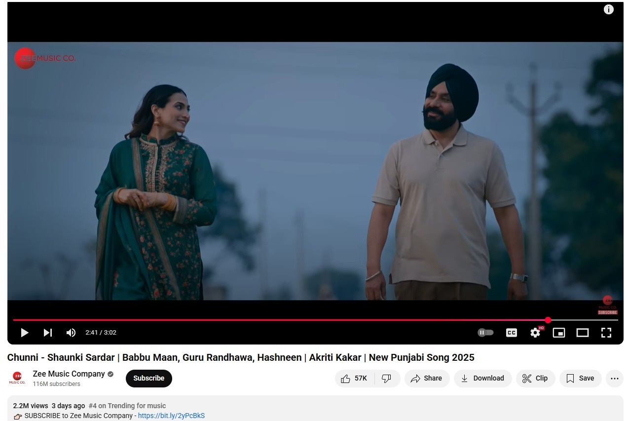 ਬਿਰਤਾਂਤ ਵਿੱਚ ਇੱਕ ਰੋਮਾਂਟਿਕ ਮੋੜ ਜੋੜਦੇ ਹੋਏ, ਦੂਜਾ ਗੀਤ “ਚੁੰਨੀ”, ਜਿਸ ਵਿੱਚ ਬੱਬੂ ਮਾਨ ਅਤੇ ਹਸ਼ਨੀਨ ਚੌਹਾਨ ਵਿਚਕਾਰ ਪਿਆਰੀ ਆਨ-ਸਕ੍ਰੀਨ ਕੈਮਿਸਟਰੀ ਹੈ, ਨੇ ਵੀ ਦਰਸ਼ਕਾਂ ਦੇ ਦਿਲਾਂ ਨੂੰ ਛੂਹ ਲਿਆ ਹੈ। ਇਹ ਟਰੈਕ ਇਸ ਸਮੇਂ ਯੂਟਿਊਬ ‘ਤੇ #4 ‘ਤੇ ਟ੍ਰੈਂਡ ਕਰ ਰਿਹਾ ਹੈ, ਜੋ ਫਿਲਮ ਲਈ ਵੱਧ ਰਹੀ ਉਮੀਦ ਨੂੰ ਉਜਾਗਰ ਕਰਦਾ ਹੈ।