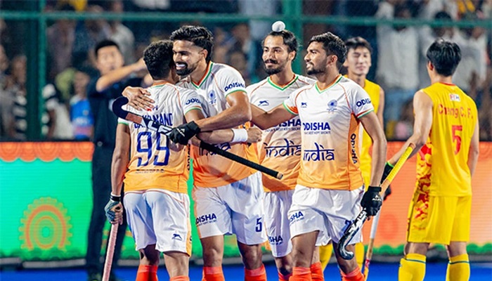 ਹਾਕੀ ਏਸ਼ੀਆ ਕੱਪ ਦੇ ਸੁਪਰ-4 ਪੜਾਅ ਵਿੱਚ, ਭਾਰਤੀ ਟੀਮ ਨੇ ਸ਼ਾਨਦਾਰ ਪ੍ਰਦਰਸ਼ਨ ਕੀਤਾ ਅਤੇ ਚੀਨ ਨੂੰ 7-0 ਨਾਲ ਹਰਾ ਕੇ ਫਾਈਨਲ ਵਿੱਚ ਆਪਣੀ ਜਗ੍ਹਾ ਪੱਕੀ ਕੀਤੀ। ਅੱਜ 7 ਸਤੰਬਰ (ਐਤਵਾਰ) ਨੂੰ ਫਾਈਨਲ ਮੈਚ ਭਾਰਤ ਤੇ ਕੋਰੀਆ ਵਿਚਾਲੇ ਮੁਕਾਬਲਾ ਹੋਵੇਗਾ, ਜੋ ਅੰਕ ਸੂਚੀ ਵਿੱਚ ਦੂਜੇ ਸਥਾਨ ‘ਤੇ ਹੈ। ਇਸ ਮੈਚ ਵਿੱਚ, ਕਪਤਾਨ ਹਰਮਨਪ੍ਰੀਤ ਸਿੰਘ ਦੀ ਅਗਵਾਈ ਵਿੱਚ, ਟੀਮ ਨੇ ਸ਼ੁਰੂਆਤ ਤੋਂ ਹੀ ਹਮਲਾਵਰ ਖੇਡ ਦਿਖਾਈ ਅਤੇ ਚੀਨ ਨੂੰ ਕੋਈ ਮੌਕਾ ਨਹੀਂ ਦਿੱਤਾ।