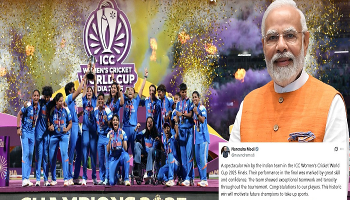 PM ਮੋਦੀ ਨੇ ਭਾਰਤੀ ਮਹਿਲਾ ਟੀਮ ਨੂੰ ਵਨਡੇ ਵਿਸ਼ਵ ਕੱਪ ਜਿੱਤਣ ‘ਤੇ ਵਧਾਈ ਦਿੱਤੀ । ਉਨ੍ਹਾਂ ਟਵੀਟ ਕਰਦਿਆਂ ਕਿਹਾ ਕਿ “ਵਿਸ਼ਵ ਕੱਪ ਦੇ ਫਾਈਨਲ ਮੁਕਾਬਲੇ ‘ਚ ਭਾਰਤੀ ਟੀਮ ਦੀ ਸ਼ਾਨਦਾਰ ਜਿੱਤ ਟੀਮ ਨੇ ਪੂਰੇ ਟੂਰਨਾਮੈਂਟ ‘ਚ ਬੇਮਿਸਾਲ ਟੀਮ ਵਰਕ ਤੇ ਦ੍ਰਿੜਤਾ ਦਿਖਾਈ। ਇਹ ਇਤਿਹਾਸਿਕ ਜਿੱਤ ਭਵਿੱਖ ਦੀ ਚੈਂਪੀਅਨ ਟੀਮਾਂ ਨੂੰ ਖੇਡਾਂ ‘ਚ ਸ਼ਾਮਲ ਹੋਣ ਲਈ ਪ੍ਰੇਰਿਤ ਕਰੇਗੀ।”