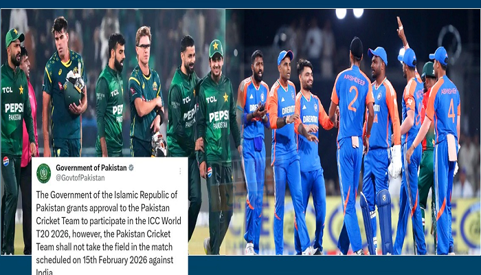 ਅਗਲੇ ਮਹੀਨੇ ਹੋਣ ਵਾਲੇ ਟੀ-20 ਵਿਸ਼ਵ ਕੱਪ ਨੂੰ ਲੈ ਕੇ ਪਾਕਿਸਤਾਨ ਨੇ ਇੱਕ ਹੈਰਾਨੀਜਨਕ ਫੈਸਲਾ ਲਿਆ ਹੈ। ਪਾਕਿਸਤਾਨ ਸਰਕਾਰ ਨੇ ਟੀ-20 ਵਿਸ਼ਵ ਕੱਪ 2026 ਵਿੱਚ ਭਾਰਤ ਵਿਰੁੱਧ ਨਾ ਖੇਡਣ ਦਾ ਫੈਸਲਾ ਕੀਤਾ ਹੈ। ਟੂਰਨਾਮੈਂਟ ਦੇ ਨਿਰਧਾਰਤ ਸ਼ਡਿਊਲ ਦੇ ਅਨੁਸਾਰ, ਇਹ ਮੈਚ 15 ਫਰਵਰੀ ਨੂੰ ਸ਼੍ਰੀਲੰਕਾ ਦੇ ਕੋਲੰਬੋ ਦੇ ਪ੍ਰੇਮਦਾਸਾ ਸਟੇਡੀਅਮ ਵਿੱਚ ਖੇਡਿਆ ਜਾਣਾ ਹੈ।
