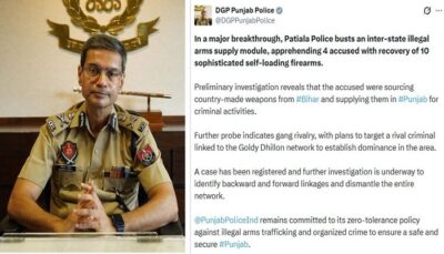 ਪਟਿਆਲਾ ਪੁਲਿਸ ਵੱਲੋਂ ਵੱਡੀ ਸਫਲਤਾ ਹਾਸਿਲ ਕਰਦਿਆਂ, ਇੱਕ ਅੰਤਰ-ਰਾਜੀ ਗੈਰ-ਕਾਨੂੰਨੀ ਹਥਿਆਰ ਸਪਲਾਈ ਮਾਡਿਊਲ ਦਾ ਪਰਦਾਫਾਸ਼ ਕੀਤਾ ਹੈ।...