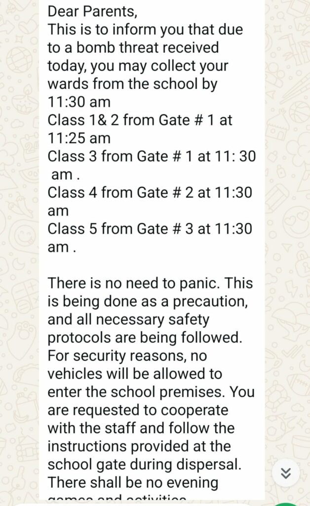 ਧਮਕੀ ਭਰੀ ਈ-ਮੇਲ ਮਿਲਦਿਆਂ ਹੀ ਬੱਚਿਆਂ ਨੂੰ ਘਰ ਭੇਜਿਆ ਗਿਆ ਹੈ ਤੇ ਪੁਲਿਸ ਦੀਆਂ ਟੀਮਾਂ ਵੱਲੋਂ ਜਾਂਚ ਕੀਤੀ ਜਾ ਰਹੀ ਹੈ। ਅਧਿਆਪਕਾਂ ਵੱਲੋਂ ਮਾਪਿਆਂ ਨੂੰ ਮੈਸੇਜ ਭੇਜਿਆ ਗਿਆ ਤੇ ਨਾਲ ਹੀ ਸਹਿਯੋਗ ਦੇਣ ਦੀ ਵੀ ਅਪੀਲ ਕੀਤੀ। ਅਧਿਆਪਕਾਂ ਨੇ ਅਪੀਲ ਕੀਤੀ ਕਿ ਪੈਨਿਕ ਨਾ ਹੋਇਆ ਜਾਵੇ। ਪਟਿਆਲਾ ਪ੍ਰਸ਼ਾਸਨ ਹੁਣ ਪੂਰੀ ਤਰ੍ਹਾ ਤੋਂ ਅਲਰਟ ਹੈ। ਹਾਲਾਂਕਿ ਇਹ ਈ-ਮੇਲ ਸਹੀ ਹੈ ਜਾਂ ਗਲਤ ਇਹ ਅਜੇ ਜਾਂਚ ਦਾ ਵਿਸ਼ਾ ਹੈ।