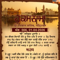 ਸ੍ਰੀ ਦਰਬਾਰ ਸਾਹਿਬ ਤੋਂ ਅੱਜ ਦਾ ਹੁਕਮਨਾਮਾ 1-4-2026