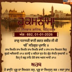 ਸ੍ਰੀ ਦਰਬਾਰ ਸਾਹਿਬ ਤੋਂ ਅੱਜ ਦਾ ਹੁਕਮਨਾਮਾ 1-1-2026