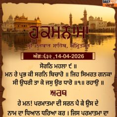 ਸ੍ਰੀ ਦਰਬਾਰ ਸਾਹਿਬ ਤੋਂ ਅੱਜ ਦਾ ਹੁਕਮਨਾਮਾ 14-4-2026