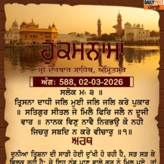ਸ੍ਰੀ ਦਰਬਾਰ ਸਾਹਿਬ ਤੋਂ ਅੱਜ ਦਾ ਹੁਕਮਨਾਮਾ 2-3-2026