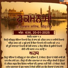 ਸ੍ਰੀ ਦਰਬਾਰ ਸਾਹਿਬ ਤੋਂ ਅੱਜ ਦਾ ਹੁਕਮਨਾਮਾ 20-1-2026