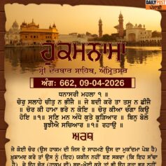 ਸ੍ਰੀ ਦਰਬਾਰ ਸਾਹਿਬ ਤੋਂ ਅੱਜ ਦਾ ਹੁਕਮਨਾਮਾ 9-4-2026
