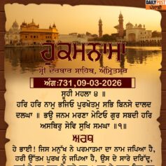 ਸ੍ਰੀ ਦਰਬਾਰ ਸਾਹਿਬ ਤੋਂ ਅੱਜ ਦਾ ਹੁਕਮਨਾਮਾ 9-3-2026
