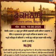 ਸ੍ਰੀ ਦਰਬਾਰ ਸਾਹਿਬ ਤੋਂ ਅੱਜ ਦਾ ਹੁਕਮਨਾਮਾ