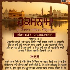 ਸ੍ਰੀ ਦਰਬਾਰ ਸਾਹਿਬ ਤੋਂ ਅੱਜ ਦਾ ਹੁਕਮਨਾਮਾ 26-4-2026