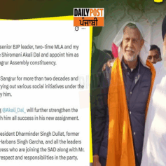 ਸ਼੍ਰੋਮਣੀ ਅਕਾਲੀ ਦਲ ‘ਚ ਸ਼ਾਮਿਲ ਹੋਏ ਅਰਵਿੰਦ ਖੰਨਾ ਨੂੰ ਸੁਖਬੀਰ ਬਾਦਲ ਨੇ ਵੱਡੀ ਜ਼ਿੰਮੇਵਾਰੀ ਸੌਂਪੀ ਹੈ। ਉਨ੍ਹਾਂ ਨੂੰ ਸੰਗਰੂਰ ਵਿਧਾਨ...