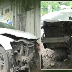 ਸੜਕ ‘ਤੇ ਜਾਂਦੀ ਕਾਰ ਲਟਕ ਗਈ ਹਵਾ ‘ਚ, ਟ੍ਰੈਫਿਕ ਪੁਲਿਸ ਦੀ ਮਦਦ ਨਾਲ ਵੱਡਾ ਹਾਦਸਾ ਹੋਣੋਂ ਟਲਿਆ