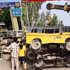 ਖੰਨਾ ‘ਚ ਟਰਾਲੇ ਦੀ ਟੱਕਰ ਨਾਲ ਪਲਟੀ ਸਕੂਲ ਵੈਨ, ਡਰਾਈਵਰ ਦੀ ਲਾਪ੍ਰਵਾਹੀ ਕਾਰਨ ਵਾਪਰਿਆ ਹਾ/ਦਸਾ