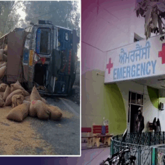 ਫਰੀਦਕੋਟ : ਬੋਰੀਆਂ ਨਾਲ ਭਰਿਆ ਟਰੱਕ ਮੋਟਰਸਾਈਕਲ ਨਾਲ ਟਕਰਾਉਣ ਮਗਰੋਂ ਪਲਟਿਆ, 1 ਦੀ ਮੌਤ, 3 ਫਟੜ