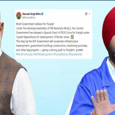 ਕੇਂਦਰ ਨੇ ਪੰਜਾਬ ਨੂੰ ਦਿੱਤੀ ਵਿਸ਼ੇਸ਼ ਗ੍ਰਾਂਟ, ਕੇਂਦਰੀ ਰਾਜ ਮੰਤਰੀ ਬਿੱਟੂ ਬੋਲੇ-‘BJP ਦੇ ਇਸ ਕਦਮ ਨਾਲ ਵਿਕਾਸ ਨੂੰ ਮਿਲੇਗਾ ਹੁਲਾਰਾ’
