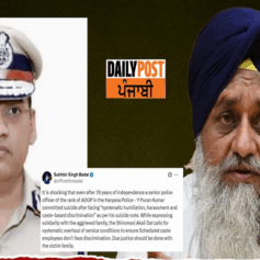 ਹਰਿਆਣਾ ਦੇ IPS ਅਧਿਕਾਰੀ ਵਾਈ. ਪੂਰਨ ਕੁਮਾਰ ਦੀ ਮੌਤ ਦਾ ਮਾਮਲਾ ਗਰਮਾਉਂਦਾ ਜਾ ਰਿਹਾ ਹੈ। ਇਸੇ ਨੂੰ ਲੈ ਕੇ ਸ਼੍ਰੋਮਣੀ ਅਕਾਲੀ ਦਲ ਦੇ ਪ੍ਰਧਾਨ...