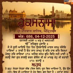 ਸ੍ਰੀ ਦਰਬਾਰ ਸਾਹਿਬ ਤੋਂ ਅੱਜ ਦਾ ਹੁਕਮਨਾਮਾ 4-12-2025