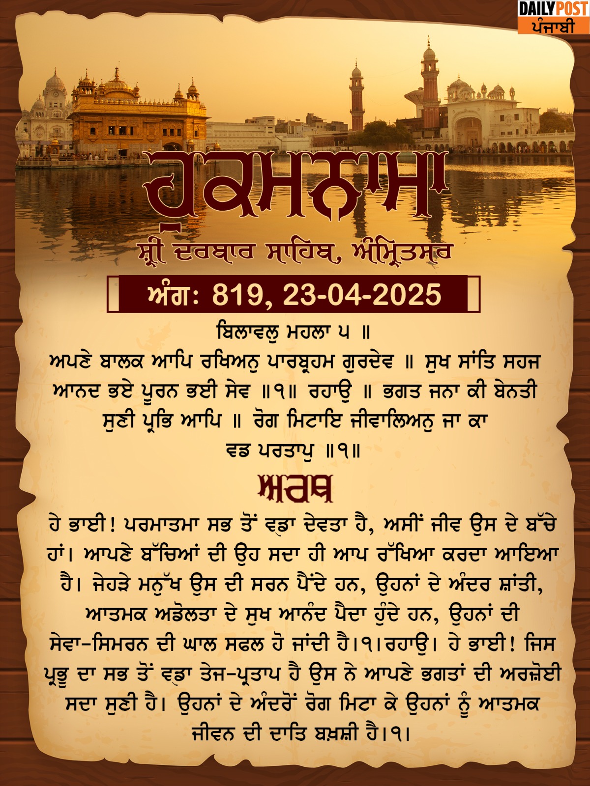 ਸ੍ਰੀ ਦਰਬਾਰ ਸਾਹਿਬ ਤੋਂ ਅੱਜ ਦਾ ਹੁਕਮਨਾਮਾ 20-12-2025