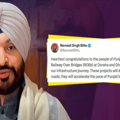 ਪੰਜਾਬ ਦੇ ਲੋਕਾਂ ਲਈ ਵੱਡੀ ਖੁਸ਼ਖਬਰੀ ਹੈ। ਦੋਰਾਹਾ ਤੇ ਧੂਰੀ ਵਿਖੇ ਰੇਲਵੇ ਓਵਰ ਬ੍ਰਿਜ ਨੂੰ ਕੇਂਦਰੀ ਰੇਲ ਰਾਜ ਮੰਤਰੀ ਰਵਨੀਤ ਸਿੰਘ ਬਿੱਟੂ...