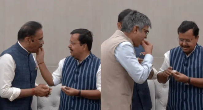 ‘ਆਪ’ ਛੱਡ ਕੇ ਭਾਜਪਾ ਨਾਲ ਜੁੜਨ ਮਗਰੋਂ ਰਾਘਵ ਚੱਢਾ, ਸੰਦੀਪ ਪਾਠਕ ਅਤੇ ਅਸ਼ੋਕ ਮਿੱਤਲ ਭਾਜਪਾ ਹੈੱਡਕੁਆਰਟਰ ਪਹੁੰਚੇ। ਉੱਥੇ, ਉਨ੍ਹਾਂ ਨੇ ਭਾਜਪਾ ਪ੍ਰਧਾਨ ਨਿਤਿਨ ਨਵੀਨ ਨਾਲ ਮੁਲਾਕਾਤ ਕੀਤੀ। ਇਥੇ ਨਿਤਿਨ ਨਵੀਨ ਨੇ ਉਨ੍ਹਾਂ ਦ ਮੂੰਹ ਮਿੱਟਾ ਕਰਾ ਕੇ ਪਾਰਟੀ ਵਿਚ ਸਵਾਗਤ ਕੀਤਾ। ਇਸ ਤੋਂ ਬਾਅਦ ਇੱਕ ਰਸਮੀ ਫੋਟੋ ਸੈਸ਼ਨ ਹੋਇਆ।