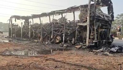 ਚੱਲਦੀ AC ਬੱਸ ਨੂੰ ਲੱਗੀ ਭਿਆਨਕ ਅੱਗ, ਵਾਲ-ਵਾਲ ਬਚੀਆਂ ਸਵਾਰੀਆਂ, Bus ਸੜ ਕੇ ਸੁਆਹ
