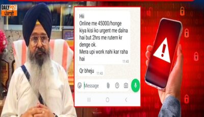 ਅੰਮ੍ਰਿਤਸਰ ਦੇ ਸ੍ਰੀ ਹਰਿਮੰਦਰ ਸਾਹਿਬ ਦੇ ਮੁੱਖ ਪ੍ਰਬੰਧਕ ਭਗਵੰਤ ਸਿੰਘ ਧੰਗੇੜਾ ਸਾਈਬਰ ਠੱਗੀ ਦੇ ਸ਼ਿਕਾਰ ਹੋ ਗਏ ਹਨ। ਹੈਕਰਾਂ ਨੇ ਪਾਰਸਲ...