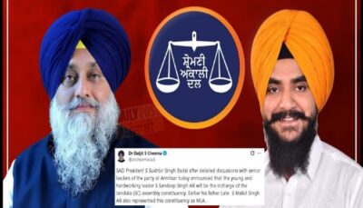 ਸੁਖਬੀਰ ਬਾਦਲ ਨੇ Sandeep Singh AR ਨੂੰ ਵਿਧਾਨ ਸਭਾ ਹਲਕਾ ਜੰਡਿਆਲਾ (SC) ਦਾ ਲਗਾਇਆ ਇੰਚਾਰਜ