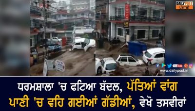 ਧਰਮਸ਼ਾਲਾ ‘ਚ ਫਟਿਆ ਬੱਦਲ, ਪੱਤਿਆਂ ਵਾਂਗ ਪਾਣੀ ‘ਚ ਵਹਿ ਗਈਆਂ ਗੱਡੀਆਂ, ਵੇਖੋ ਤਸਵੀਰਾਂ