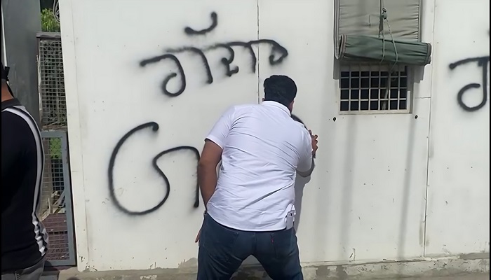 ਜਲੰਧਰ ਵਿਚ ਆਮ ਆਦਮੀ ਪਾਰਟੀ ਦੇ ਯੂਥ ਵਿੰਗ ਦੇ ਵਰਕਰਾਂ ਨੇ ਅੱਜ ਦੁਪਹਿਰ ਪਾਰਟੀ ਛੱਡ ਕੇ ਭਾਜਪਾ ਵਿਚ ਸ਼ਾਮਲ ਹੋਏ 7 ਰਾਜ ਸਭਾ ਸਾਂਸਦਾਂ ਖਿਲਾਫ ਪ੍ਰਦਰਸ਼ਨ ਕੀਤਾ। ਬਾਗੀ ਸਾਂਸਦਾਂ ਮਗਰੋਂ ਜਿਥੇ ਇਕ ਪਾਸੇ ਜਲੰਧਰ ਵਿਚ ਮਾਹੌਲ ਕਾਫੀ ਭਖ ਗਿਆ ਹੈ ਤੇ ਸਥਿਤੀ ਕਾਫੀ ਤਣਾਅਪੂਰਨ ਹੋ ਗਈ ਹੈ ਕਿਉਂਕਿ ਪੁਲਿਸ ਮੁਲਾਜ਼ਮਾਂ ਦੇ ਸਾਹਮਣੇ ਹੀ ਕੁਝ ਲੋਕਾਂ ਵੱਲੋਂ ਕਾਲੇ ਰੰਗ ਦੀ ਸਿਆਹੀ ਦੇ ਨਾਲ ਕੰਧਾਂ ‘ਤੇ ਗੱਦਾਰ ਲਿਖ ਦਿੱਤਾ ਗਿਆ ਹੈ। ਪੁਲਿਸ ਉਨ੍ਹਾਂ ਨੂੰ ਰੋਕਣ ਦੀ ਕੋਸ਼ਿਸ਼ ਤਾਂ ਕਰ ਰਹੀ ਹੈ ਪਰ ਉਹ ਨਹੀਂ ਮੁੜ ਰਹੇ।