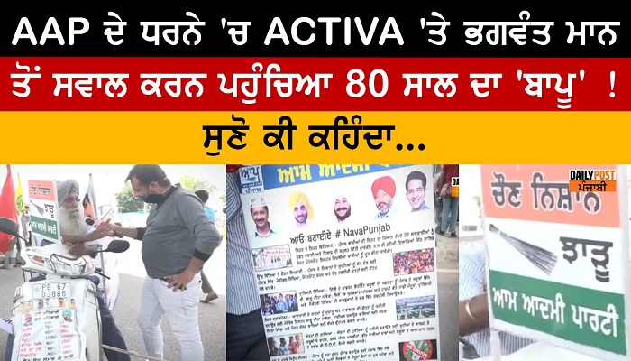 AAP ਦੇ ਧਰਨੇ ‘ਚ ACTIVA ‘ਤੇ ਭਗਵੰਤ ਮਾਨ ਤੋਂ ਸਵਾਲ ਕਰਨ ਪਹੁੰਚਿਆ 80 ਸਾਲ ਦਾ ‘ਬਾਪੂ’ ! ਸੁਣੋ ਕੀ ਕਹਿੰਦਾ…