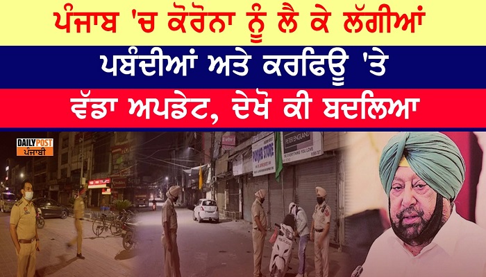 ਪੰਜਾਬ ‘ਚ ਕੋਰੋਨਾ ਨੂੰ ਲੈ ਕੇ ਲੱਗੀਆਂ ਪਬੰਦੀਆਂ ਅਤੇ ਕਰਫਿਊ ‘ਤੇ ਵੱਡਾ ਅਪਡੇਟ, ਦੇਖੋ ਕੀ ਬਦਲਿਆ