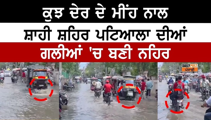 ਕੁਝ ਦੇਰ ਦੇ ਮੀਂਹ ਨਾਲ ਸ਼ਾਹੀ ਸ਼ਹਿਰ Patiala ਦੀਆਂ ਗਲੀਆਂ ‘ਚ ਬਣੀ ਨਹਿਰ, ਡੁਬਕੀਆਂ ਲਗਾ ਕੇ ਜਾ ਰਹੇ ਲੋਕ